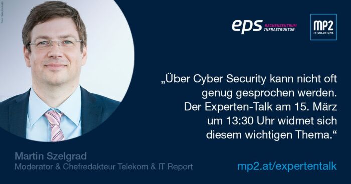 Unter der Moderation von Martin Szelgrad (Telekom & IT Report) sprachen Peter Reisinger von EPS sowie Gerlinde Macho und Manfred Pascher von MP2 IT-Solutions mit Klaus Veselko (Geschäftsführer von CIS – Certification & Information Security Services GmbH) sowie Ralf Ebenig (RZ-Planung) über aktuelle Anforderungen und Sicherheitskonzepte für Betriebe. Der Online-Experten-Talk fand am 15. März mit zahlreichen Zuhörern statt. Was vor allem deutlich wurde: die Dimension und Bedeutung des Themas Cyber-Sicherheit.