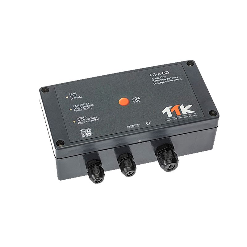 With three LED indicators and two SPDT relays, the leakage device is suitable for locating liquid leaks (oil, hydrocarbons, fuel). The FG-A-OD Alarm Unit is used in conjunction with the FG-OD hydrocarbon product range. The leak monitoring system quickly detects oil leakage or the leakage of other liquids (non-conductive hydrocarbon liquids and solvents). Oil leaks and fluid leaks can have catastrophic consequences not only for the environment. Data in data centers and server rooms is also at risk from leakage. A properly installed oil leakage warning system can reduce hazards and costs (due to fire or production losses). Leak detection system water without localization.