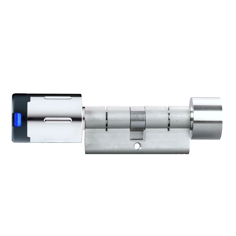 The DoorLock-DC is a battery-operated, electronic knob cylinder with wireless technology. It can be installed without much assembly effort using a Europrofilgylinder (optional) and is suitable for use in all commercially available locks for DIN-Europrofil. Thus, the wireless doorknob offers a cost-effective locking solution for both new buildings and existing properties.