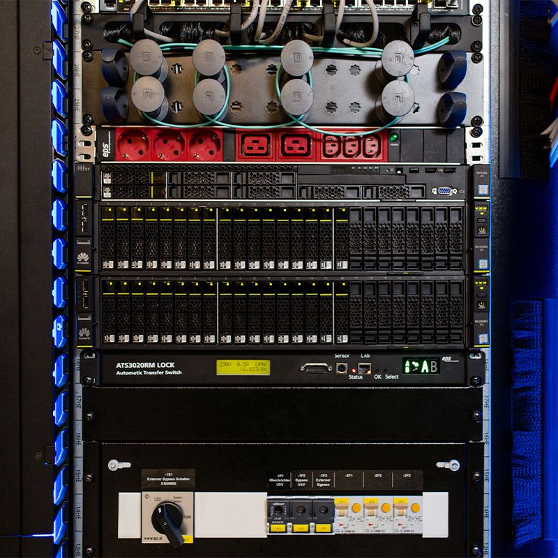 Der EBS Schalter (Externe Bypass Switch) für USV-Anlagen kann ganz einfach in einem 19″ Serverrack bzw. Netzwerkschrank eingebaut werden. Mit nur 4 HE (Höheneinheiten) bleiben dem Anwender viele Freiheiten im 19″ Rack. Der EBS Schalter bietet die unterbrechungsfreie Umschaltung der Last von USV-Strom auf Netzstrom und umgekehrt. Gleichzeitig kann der USV-Techniker noch einfacher die USV-Systeme und Anlagen warten: Der EBS sorgt nämlich dafür, dass die USV-Anlage problemlos physikalisch aus dem Netz genommen werden kann. Deshalb ist eine Wartung oder ein Tausch der USV-Anlage bei laufendem Serverbetrieb mit dem EBS möglich.